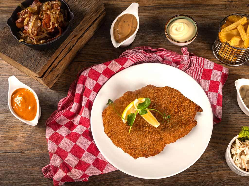 Reserveer een tafelDe maand maart staat in het teken van onze nieuwe hotels net over de grens in Duitsland. Schuif aan in ons restaurant en geniet van een schnitzel XL geserveerd met boerenfrites, salade en een saus naar keuze.